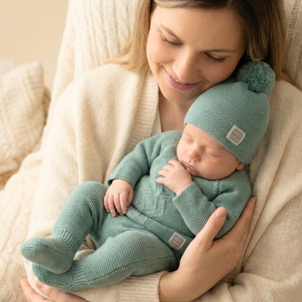 Cappellino in maglia abbinato con morbido pompon, perfetto per proteggere la testolina.